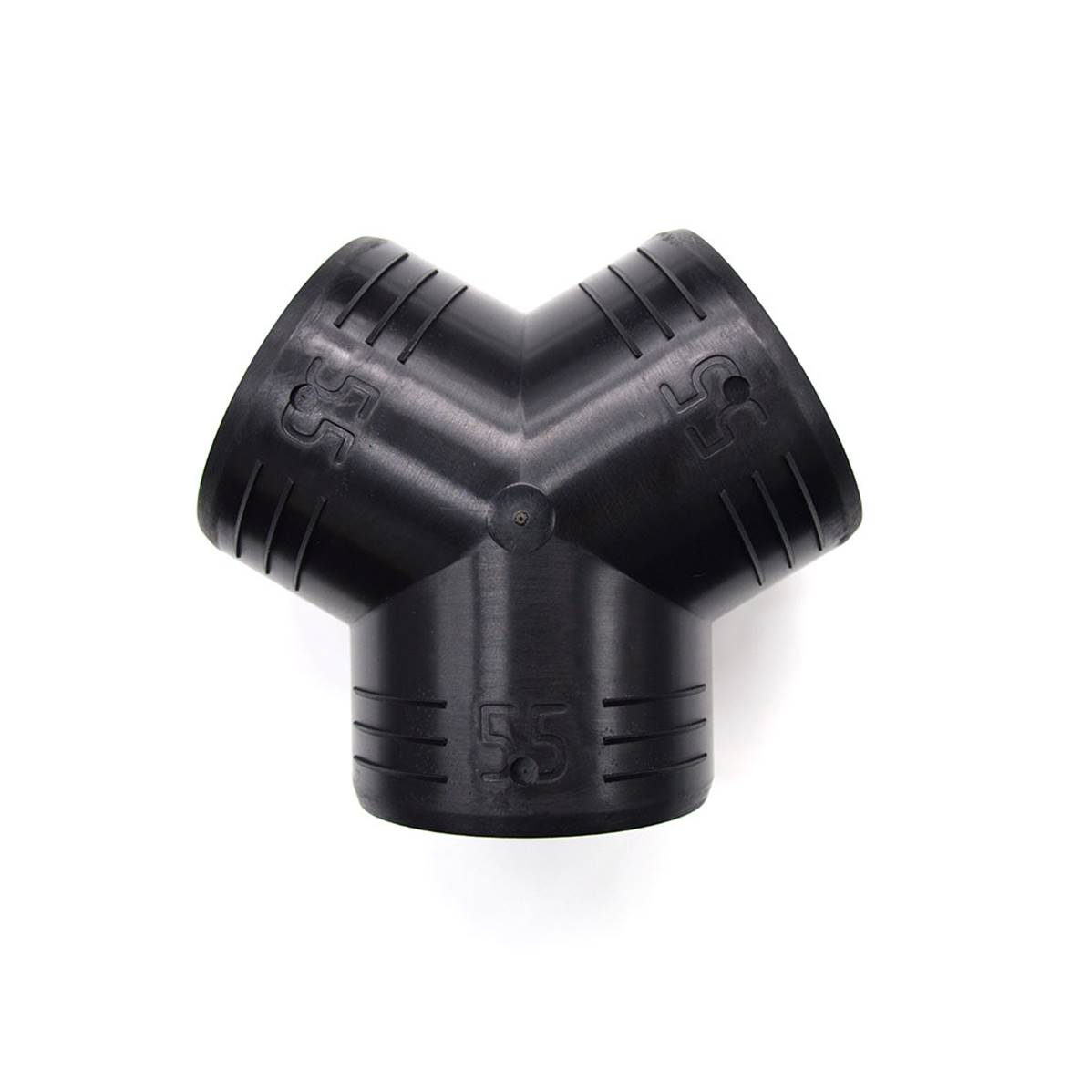 Y-connector with 3 ports Ø 55mm, sold individually. Used to split or combine airflow in cabin ventilation or heating duct systems. Durable component, easy to install in Ø 55mm duct networks.