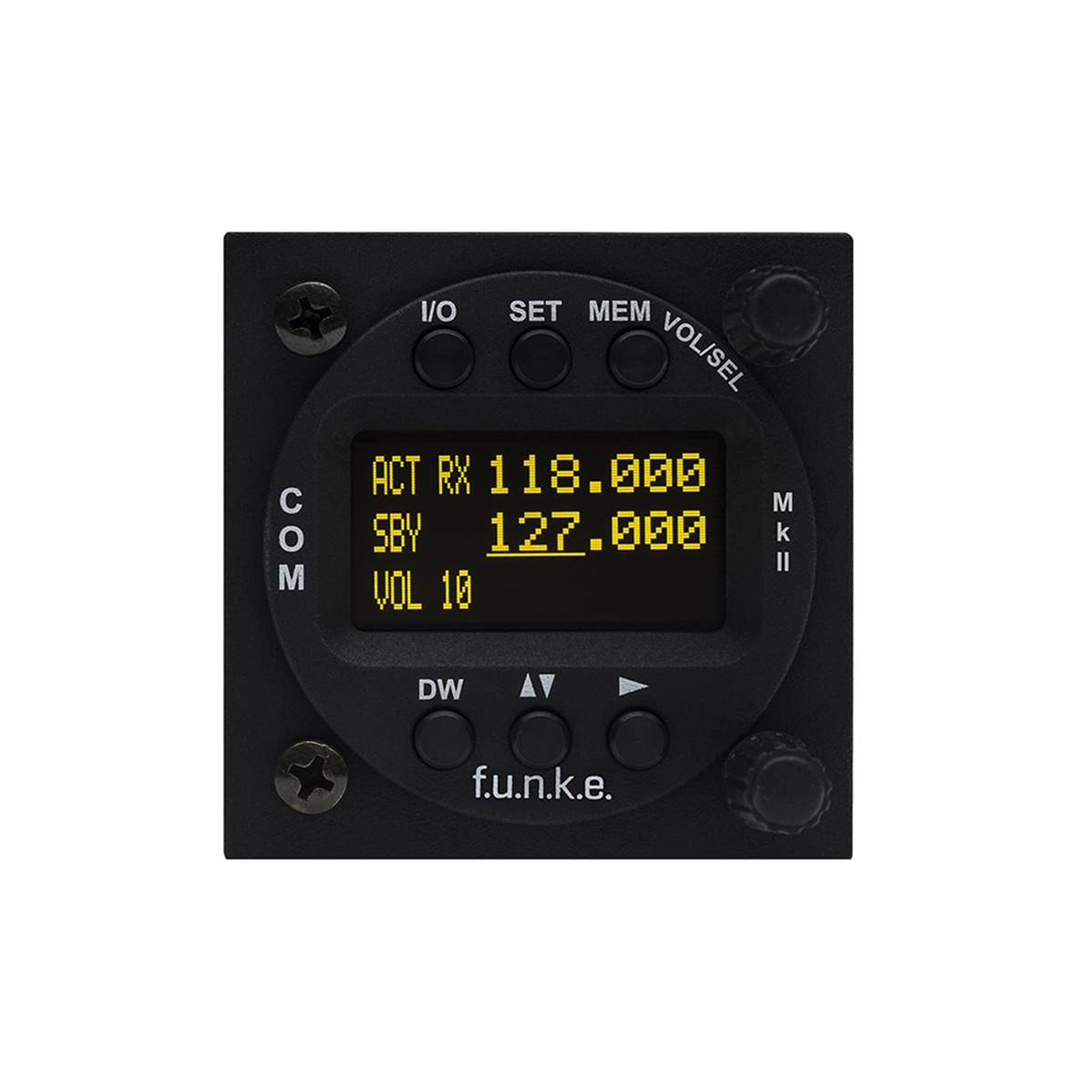 Radio FILSER ATR 833 OLED  This new VHF post is certified JAR-TSO the 15.11.2007. It is an 760 channels post, with the frequency choice by the name of airport or in direct selection. Homologation number civil aviation: E0  100 memories with the complete name Frequency range : 118.000MHz ... 136.975MHz OLED Display on four lines. Search of frequency with the airport name. Possibilities of connections with a repeater in back place Intercom integrated (with level setting of intercom opening) Dimensions: Diam: 57mm, Width:178mm (Without connections) Wieght:0.7Kg Nominal tension: 10.5 to 14V Power of emissions: 6W Consumption in standby: 150mA Consumption in emission: 1.8A  Delivered with EASA FORM ONE