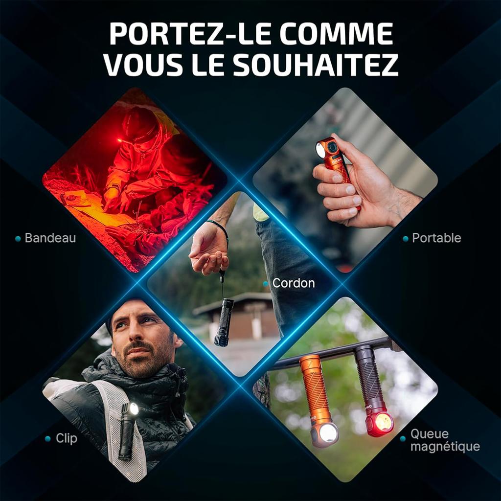 - Dual White and Red Lighting : Enjoy an intense white light for your everyday tasks and a soft red light with 2 brightness levels and a flashing mode, ideal for preserving night vision or signaling your presence.