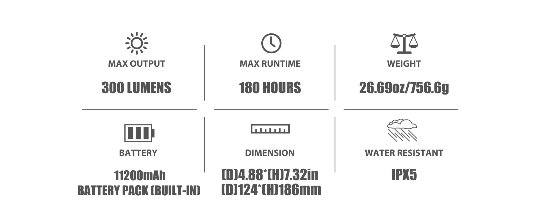 - Emergency Power Bank : Equipped with two output ports (USB-C and USB-A), it offers fast 18W reverse charging, transforming the lantern into a backup power source for phones, small fans, earbuds, and other essential devices.