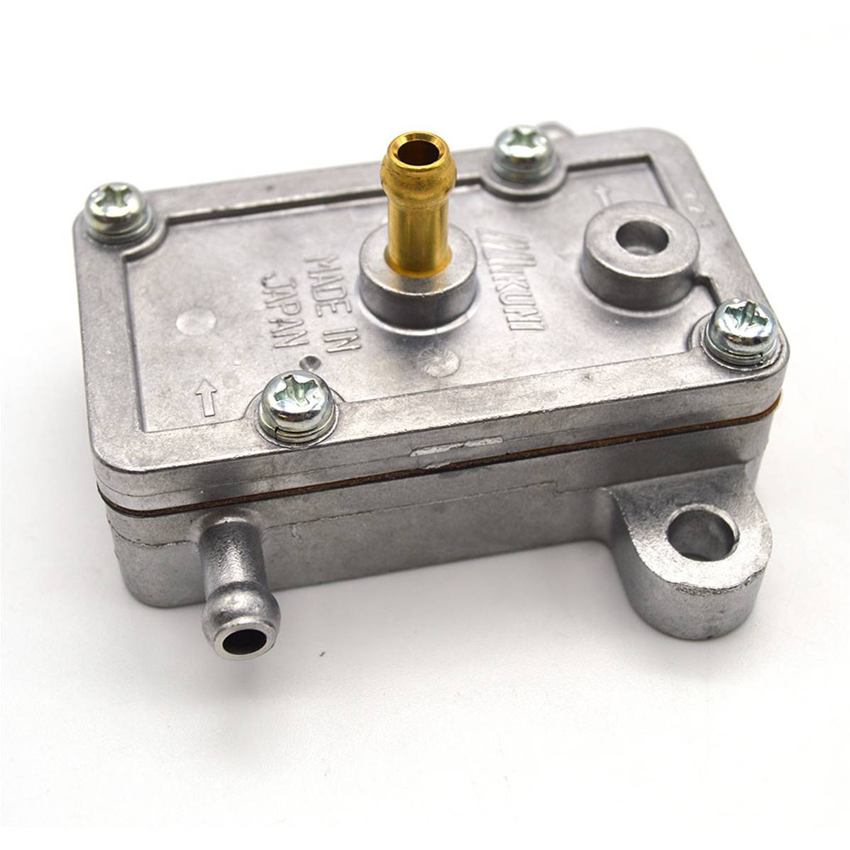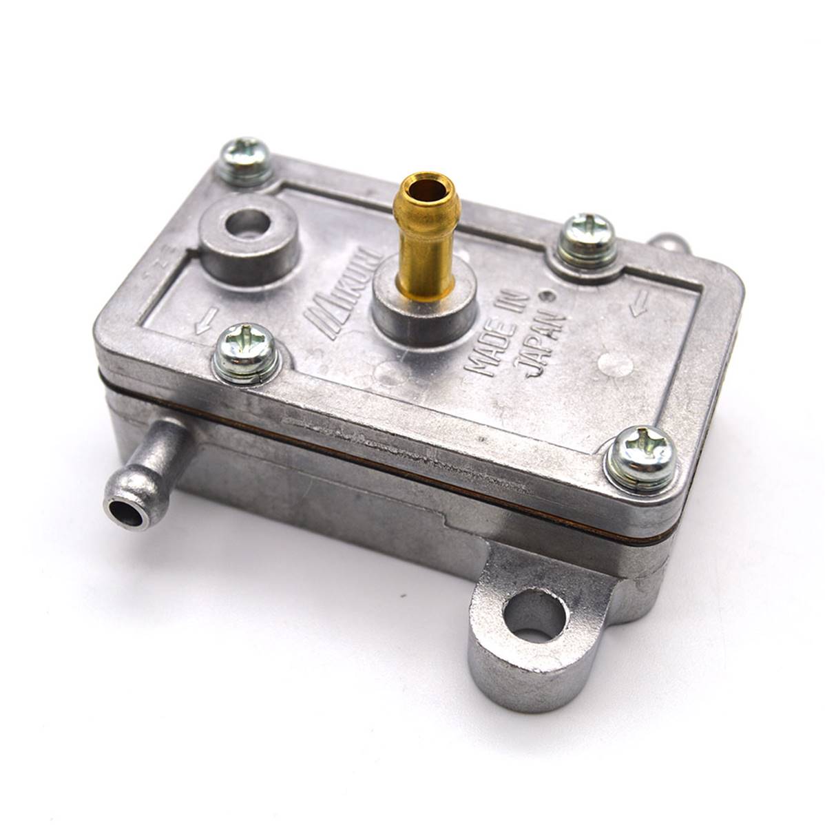 Rectangular fuel pump Mikuni, fits for most of 2T motor, simple carburetor with float. Input / Output diam 6 mm