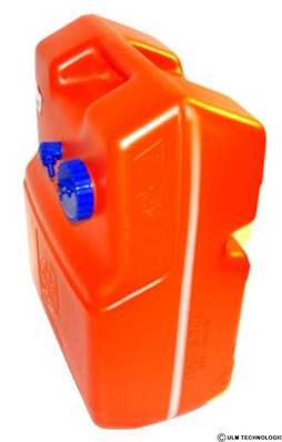 Plastic fuel tank 10,5L for paragliding: - 3 inserts M6 to fixate on the frame – Full with DIN 51 caps and air take – Rotational molding, polypropylene PE resisting to UV – 10,5 L, max 11 L – May also be used with the sensor (ref: 70565) or with the other one (ref: 70680) – Weight: 1,050 gr