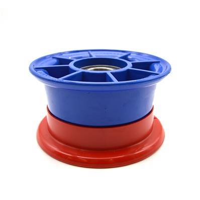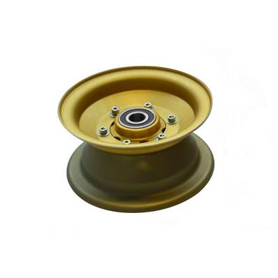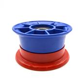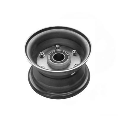 Plastic 4’ wheel rim without demountable brake. The ball bearing range is 46 mm on a 25 mm diameter axis...