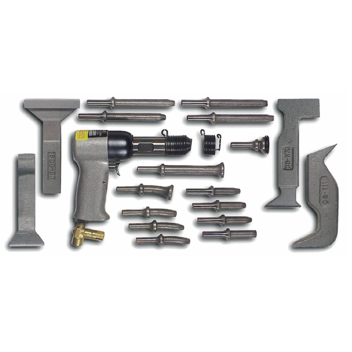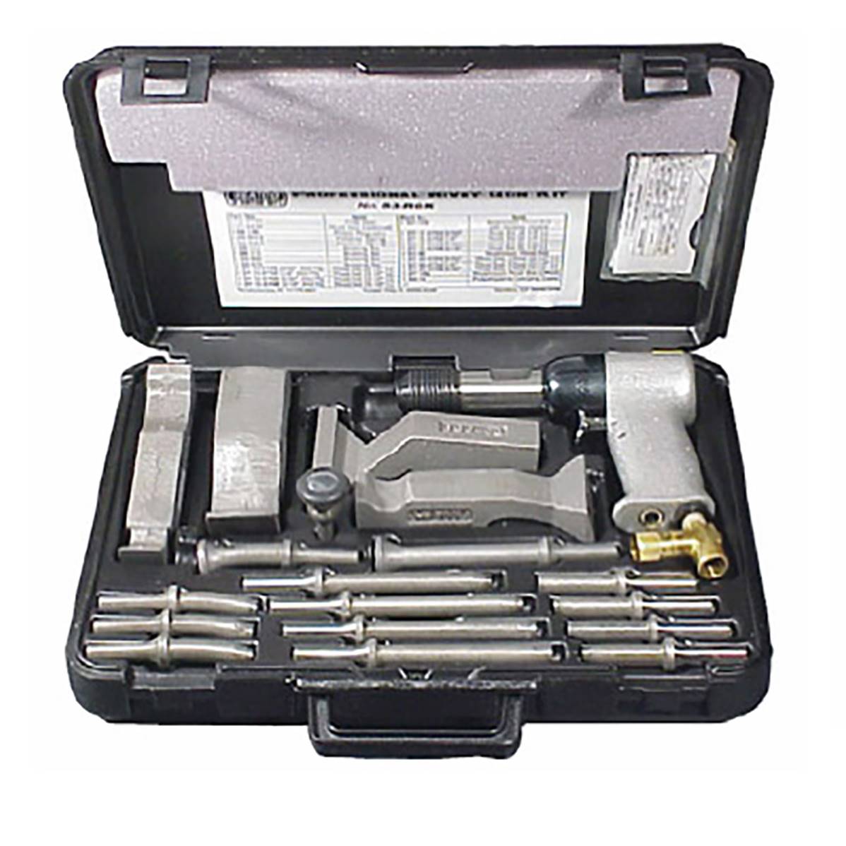 Riveter full rivet. This kit includes every tools necessary to assemble and rivet every full rivets. Tool sets 3/32, 1/8, 3/16 for full rivets AN470 universal. – 3 tools to rivet AN426 – 2 retaining springs – 1 air regulator to adjust the pneumatic hammer – 1 pneumatic gun and its briefcase