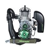 | (Code: 76003) Engine SIMONINI Mini 2 Plus, full including : the strap reducer Poly V with 250W electric starter, the WALBRO WB 37 carburetor and air filter, the exhaust pipe and 12V charge regulator. Type 2T single cylinder, air cooling system. Rotating direction counterclockwise seen from the side propeller cylindered 202 CC. Alloy cylinder treated with Nikasil. Speed x bore 58 mm x 66,4 mm. Compression ratio: 10,50 / 1 Performance 25 CV on 7500 lap/min. Lubrication fuel/oil 3% mixture. Fuel Euro 95 starter. IDM transducer. Carburetor with WALBRO WB 37 air filter. Electric ignition: Yes. Belt reduction Poly V 1/ 2,34 or 1/ 2,226 or 1/230 or 1/310. Full weight: 16 kg
