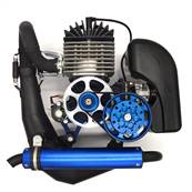 | (Code: 76012) MINI3 Simonini engine, including an exhaust pipe, the BING 36 carburetor, the air filter, the electric starter, and the 1/276 reducer. Type 2T, single cylinder, air cooling system. Rotating direction: counterclockwise seen from the propeller side. Cylindered 270 CC. Cylinder made with alloy treated with Nikasil. Speed x bore: 65 mm x 72,8 mm. Compression ratio: 10,50/1. Performance: 33 CV on 7000 lap/min. Lubrication. Fuel / oil 3% mixture, Euro 95 fuel. IDM transductor starter. Carburetor with Bing 36 air filter. Electric starter 12 V – 400w. Exhaust: Yes. Poly V 1/ 2,76 or 1/ 2,49 or 1/ 2,57 belt reducer. Full weight: 18 kg, packaged weight: 35 kg.