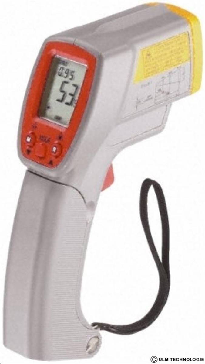 Display: Backlit LCD display. Spectral response: 6 – 14 m. aiming: laser terminal <1 mW (class II) Data memory capacity: 50 clearances (direct reading since the LCD display). Lifetime: 1 x battery 9V PP3: nearly 100 hours. Dimensions and weight: 172 x 118 x 46 mm, 220g (cursor and backlighting disabled). Provided with OO3 battery, wristband, belt case and instructions.