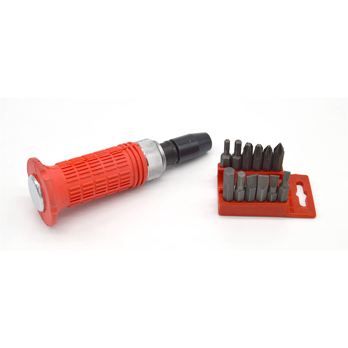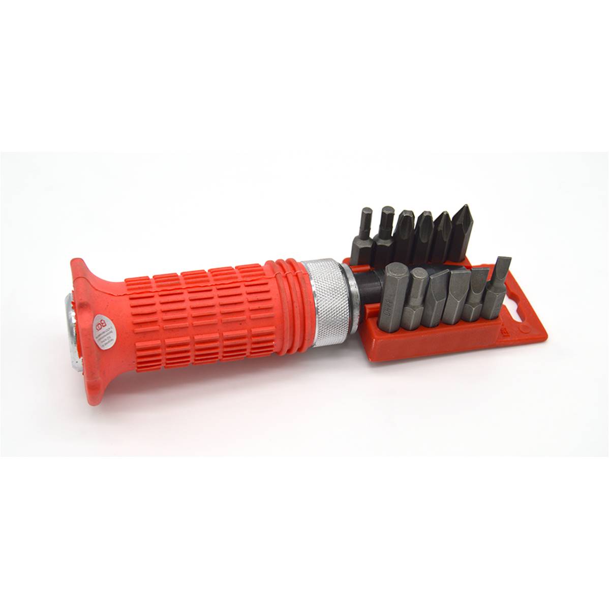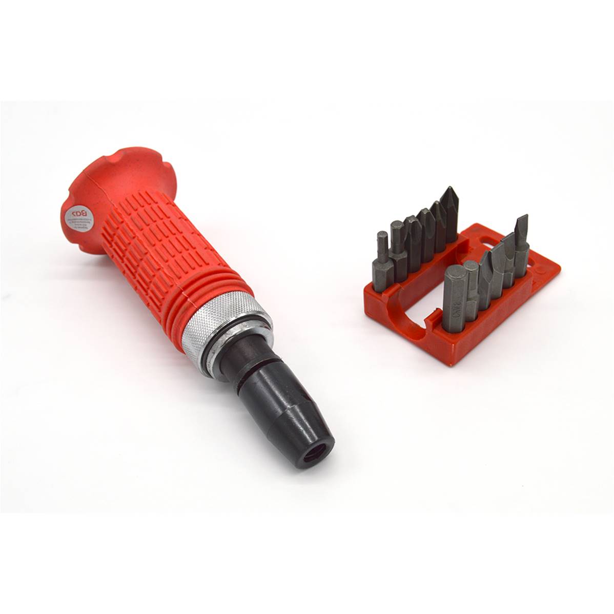 1/2 reversible impact screwdriver delivered with 12 nozzles Flat in 5, 6 and 9 mm Cruciate size 1, 2, 3 and 4 6 flaps of 4, 5, 6 and 8 mm