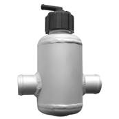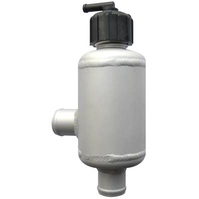 Aluminum expansion vase really light, with degassing button calibrated to 1 bar, allowing water round-trip to the water tank. Two 180° output diam 25 mm