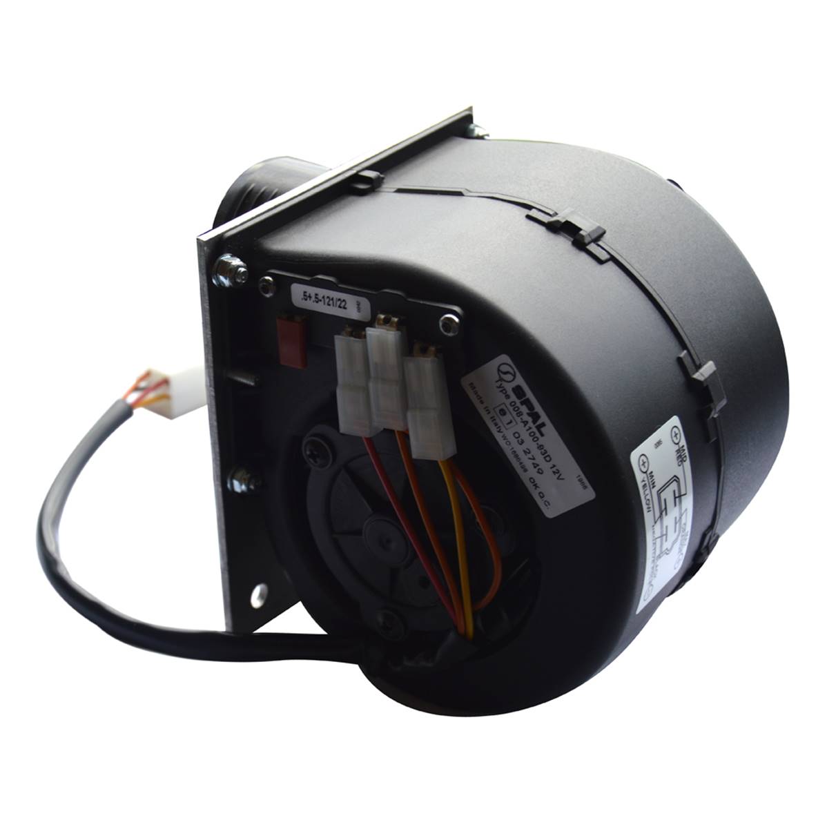 Radial fan 260 M3/h, 60W, 65db,12V, 3 speed fan, output diameter 55mm. Weight: 750g