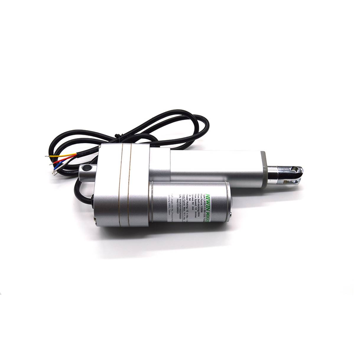 Ram with trim-pot, provides with a 50 mm stroke and a limit stop. Characteristics: TYPE: LAS3-1 – Maximum strength: 120 DaN – Abutment strength max: 80 Dan – Max speed: 8/12 sec – Stroke: 50 mm – Tension: 12 volts – Max power: 6 amp – End of travel integrated – Trim-pot: 21 Ohm/ mm – Retracted length: 196 mm – Protection: IP 54