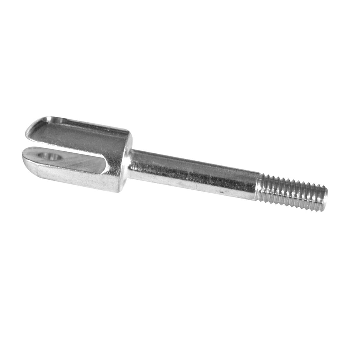 Female M6x65 screw eye in 8.8 yellow galvanized steel. The 5 mm axis can be extended to 6 mm, without resistance diminution. The choice of the screw's dimension allows an assembly combination where the steamlined torpédo's alumunum yoke can be associated too.