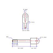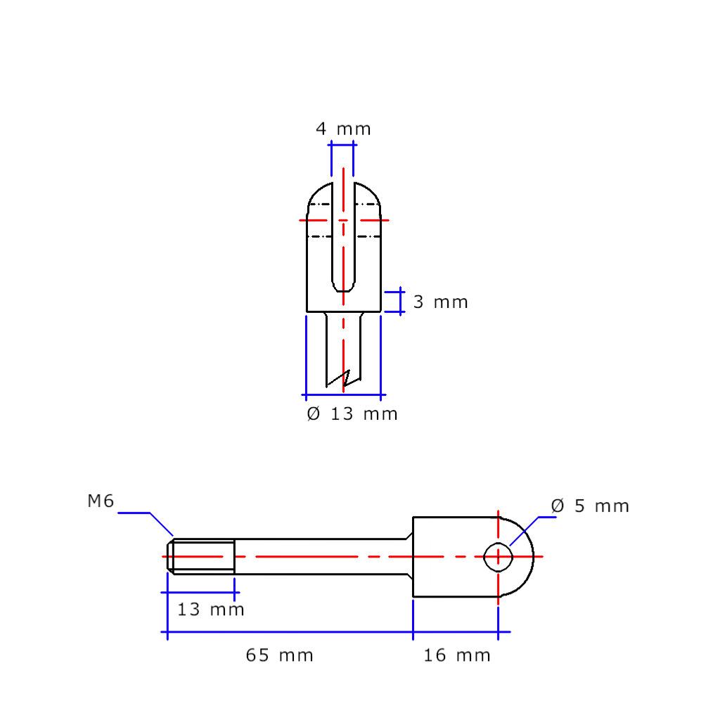 Female M6x65 screw eye in 8.8 yellow galvanized steel. The 5 mm axis can be extended to 6 mm, without resistance diminution. The choice of the screw's dimension allows an assembly combination where the steamlined torpédo's alumunum yoke can be associated too.