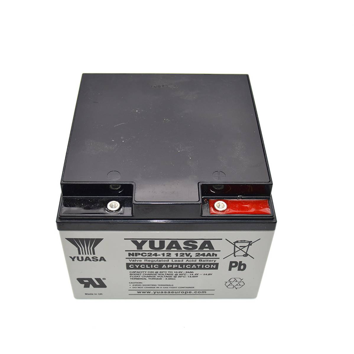 Yuasa battery 12 V – 24 A – Maintenance-free. Great lifetime thanks to Pb-ca plates. Dim: 24 Ah = 166 x 175 x 125 mm (cf document on the website)